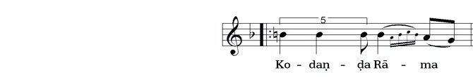 In some bhajans alternative melodic turns are notated with rhombus note heads. Grace notes are suggestions for ornamentation and not to be copied literally. Grace notes usually start on the beat, not before the beat like in western classical music.