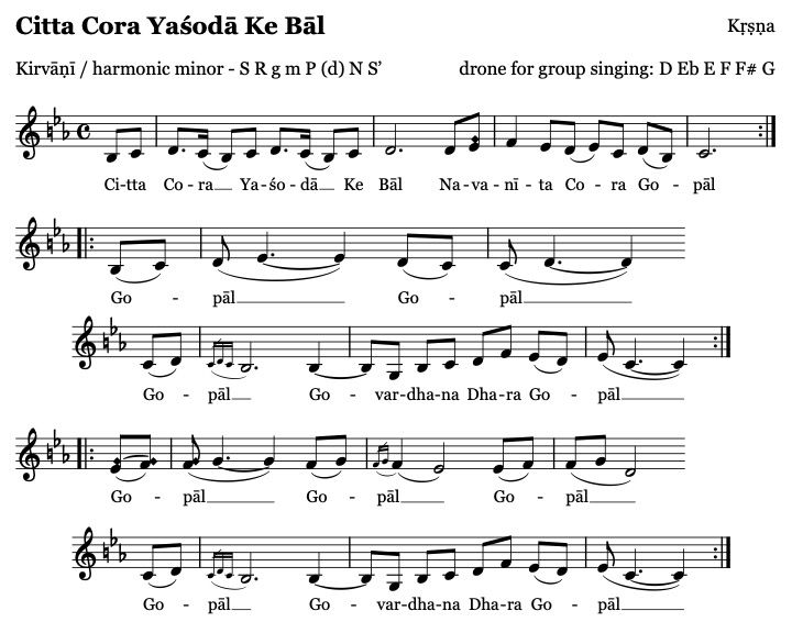 Gopal, Beschützer der Kühe, Kind Deiner Pflegemutter Yashoda, Du stiehlst unsere Herzen so wie Du die Butter der Hirtenmädchen gestohlen hast.