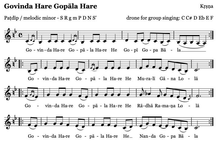 O Krishna, Du ewiger Gefährte von Radha, die Du durch Deine wogenden Melodien bezauberst.