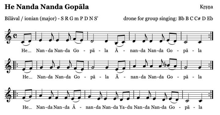Gopala, geliebter Sohn Deines Pflegevaters Nanda, Du bist Krishna, der Beschützer der Kühe. Du beschenkst uns mit Glückseligkeit,