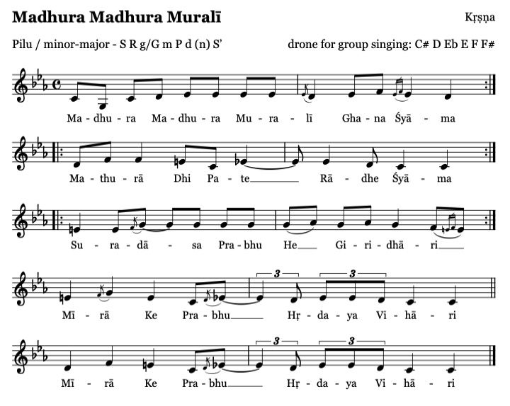 Wie melodiös und süss spielt Deine Flöte, geliebter Krishna mit dem dunkelblauen Antlitz.