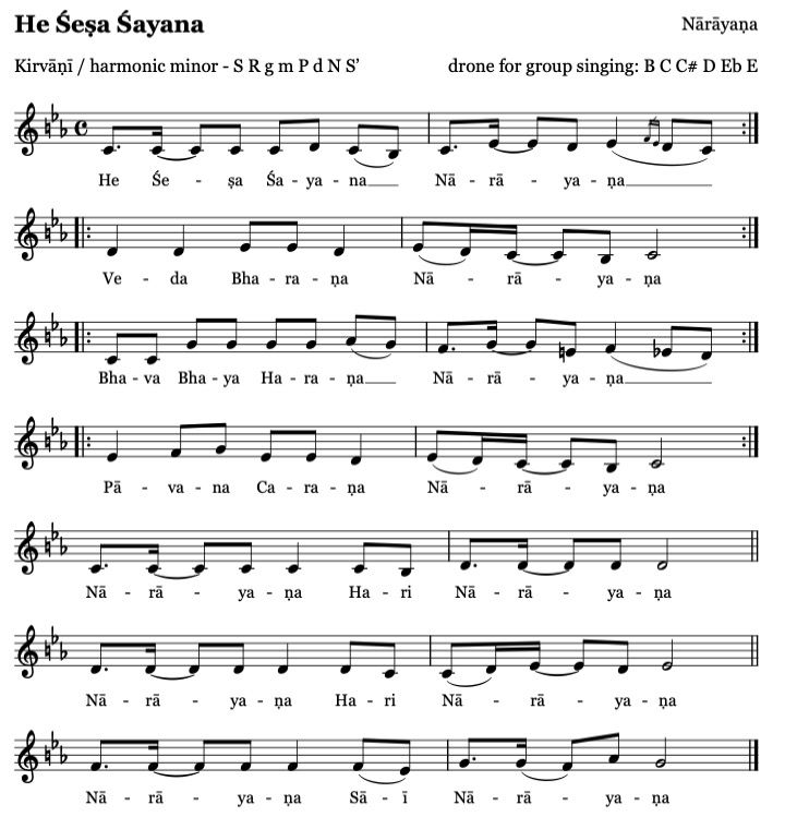 Narayana, Menschensohn, Du vereinst in Dir Brahma, Vishnu und Krishna, Du ruhst auf der tausendköpfigen Schlange.