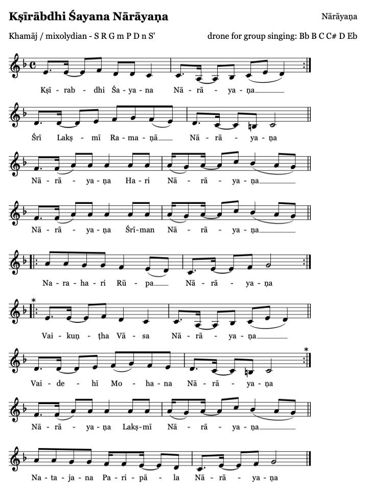 Chantet den Namen von Narayana, der auf dem Ozean aus Milch ruht,