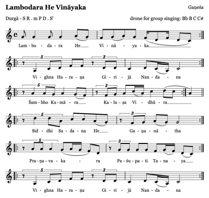 und von Vater Shiva, der personifizierten Güte. Ehre sei Ganesha, der unsere Unreinheiten beseitigt,