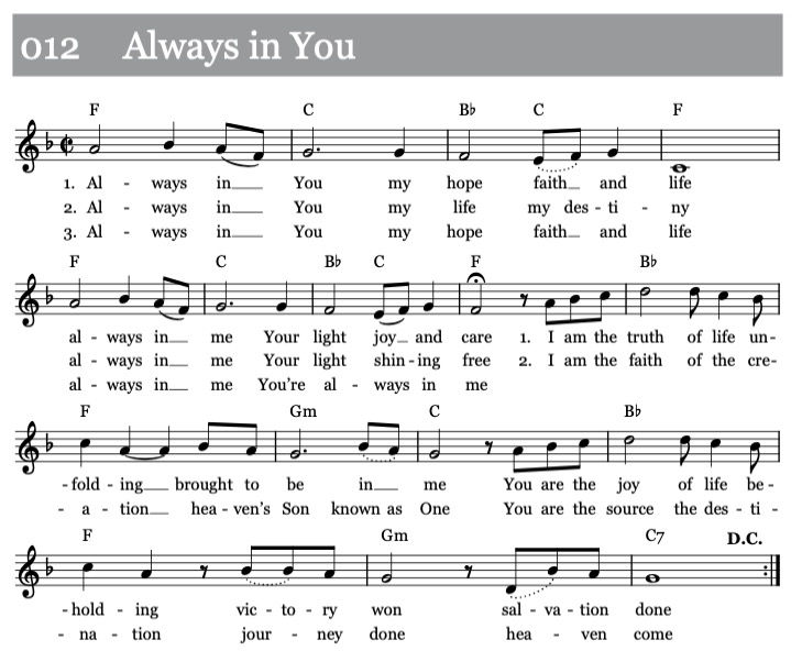 Immer in Dir ruht meine Hoffnung, mein Glaube, mein Leben,immer in mir bist Du, immer in mir.