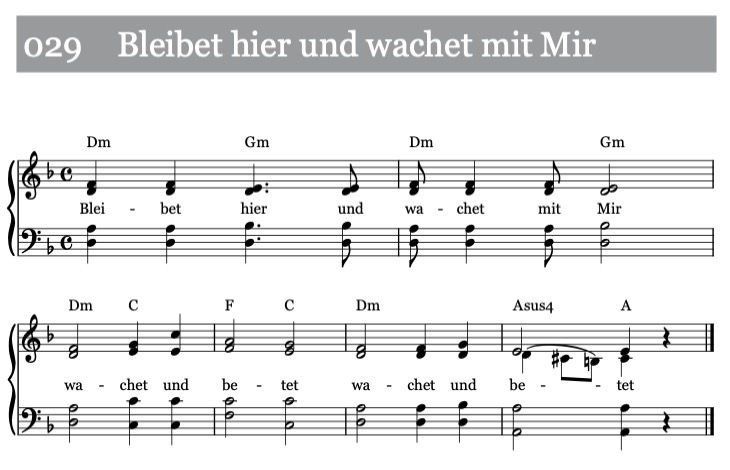 Text: nach Matthäus 26,36–38 resp. Markus 14,32–42