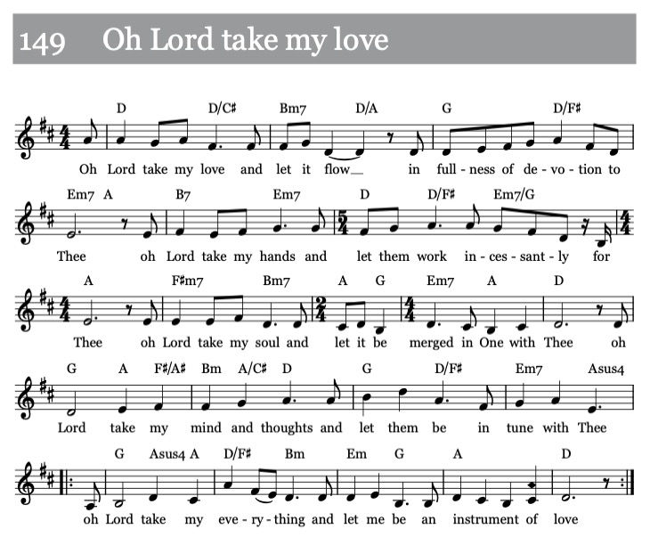 Oh Herr, nimm meinen Geist und meine Gedanken, und lass sie im Einklang mit Dir sein.