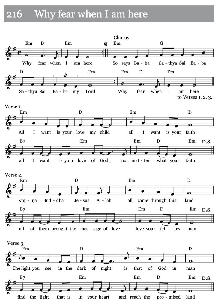 Warum sich fürchten, wenn Ich hier bin?Das sagt Baba, Sathya Sai Baba, Sathya Sai Baba, Mein Herr.